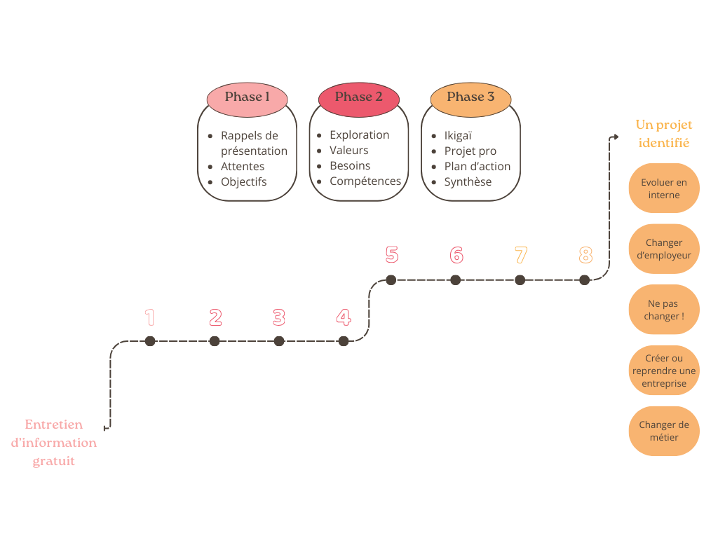 - 16h d'entretiens individuels (8 RDV de 2h répartis sur 3 phases)